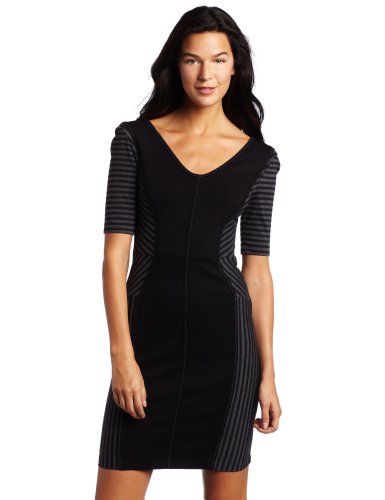 BCBGMAXAZRIA Women's Haylan Stripe Blocked Dress, Black Combo, Large Review